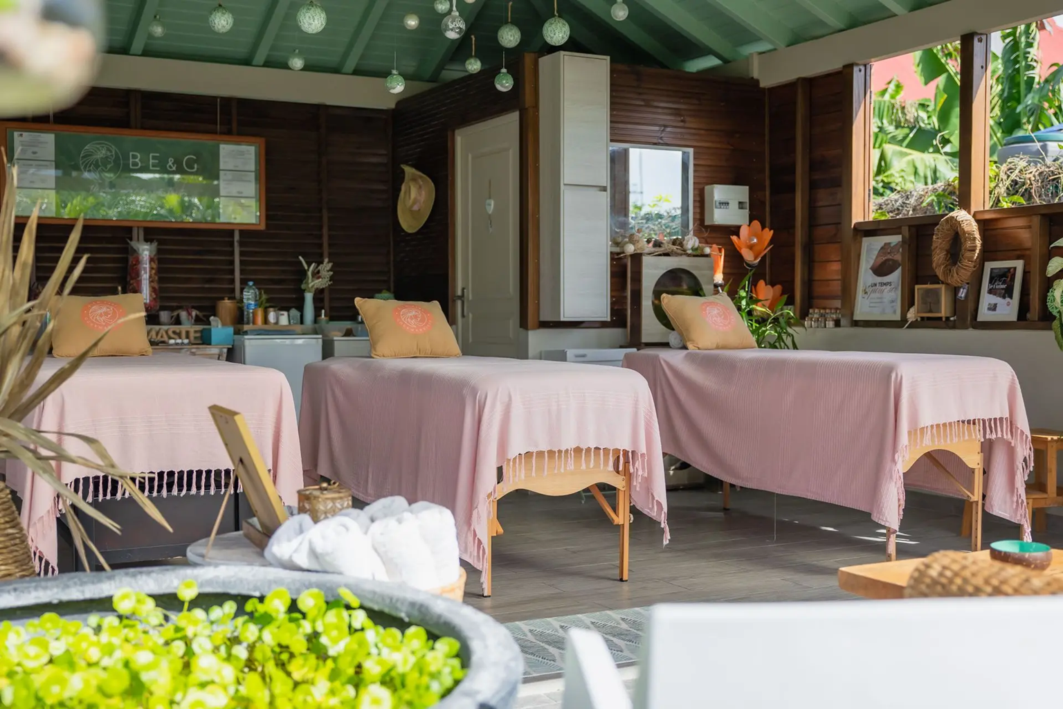 Bienvenue chez Bien être & gourmandises, Centre de bien être aux prestations Prémium. Situé au Moule dans un cadre ouvert et naturel à la décoration soignée nous proposons à vos invités un moment d'exception où toutes les attentions leurs sont destinées. Une surprise, un cadeau, une récompense ne s'oublient pas, faites plaisir à ceux que vous aimez en leur offrant un instant précieux d'évasion.